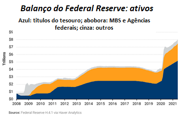 A grande questão em pauta é se chegou hora de os bancos centrais desacelerarem suas compras de títulos do governo destinadas a injetar dinheiro de crédito nas economias, com o objetivo de evitar o colapso de empresas na desaceleração da pandemia. No ano de 2020, marcado pela pandemia, o Federal Reserve fez compras equivalentes a 11% do PIB dos EUA, o Banco da Inglaterra 14% do PIB do Reino Unido e muitos outros bancos do G7 de cerca de 10% do PIB nacional.