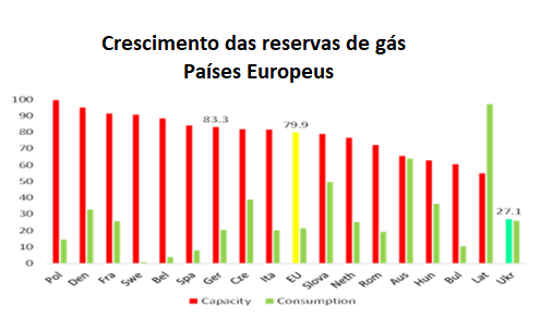 Os governos europeus têm tentado desesperadamente encontrar fontes alternativas de fornecimento de energia. Percorreram todo o mundo para comprar gás e petróleo a preços de mercado. Isso levou à disparada dos preços do gás natural e do petróleo. No entanto, com grandes custos, a Europa vem aumentando seu armazenamento de gás para enfrentar o próximo inverno. Os níveis de armazenamento de gás estão agora em 80% da capacidade e ainda mais altos na Alemanha.