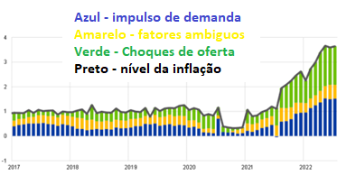 O gráfico em sequência, em que a inflação está decomposta em fatores, ilustra essa constatação.