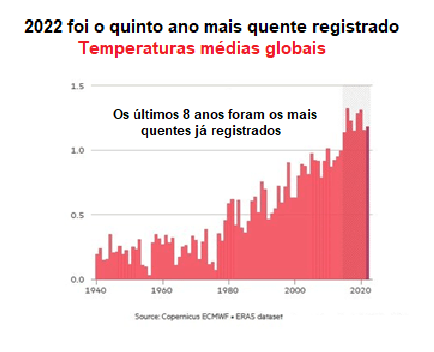 O ano passado foi marcado por 12 meses de extremos climáticos. A Europa registrou o verão mais quente desde sempre, apesar da presença pelo terceiro ano consecutivo do fenômeno La Niña, o qual tem efeito de arrefecimento – apurou o Copernicus Climate Change Service na sua ronda anual do clima da Terra. Ao mesmo tempo, as emissões de gases de efeito estufa dos EUA aumentaram novamente em 2022, deixando o país ainda mais atrás de suas metas segundo o acordo climático de Paris, apesar da aprovação de uma ampla legislação de energia limpa no ano passado.
