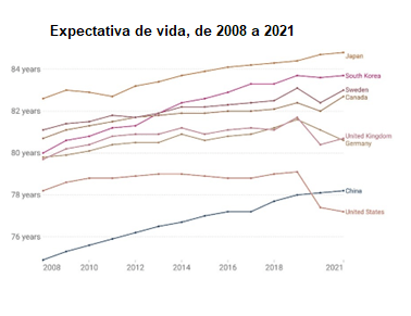 Pelo menos 15 milhões de “vidas desnecessárias” foram perdidas com a pandemia de COVID, principalmente em países de baixa e média renda. Mas mesmo os EUA viram sua expectativa de vida cair para o nível mais baixo em 26 anos. De fato, a expectativa de vida dos EUA está agora abaixo da China!