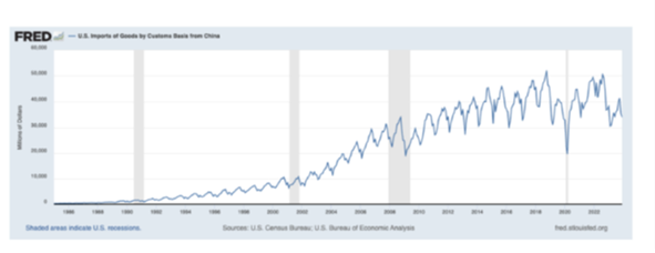 Importações de produtos chineses para os Estados Unidos: Infográfico FRED (Reserva Federal de St. Louis)