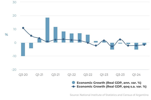 A retomada é, portanto, extremamente frágil e a recessão deverá ser mais profunda do que o previsto pelo Fundo Monetário Internacional (FMI) e pelo Governo (que esperava uma queda do PIB de 2,8%). O Indec publica mensalmente um índice de atividade econômica. Em setembro, para grande decepção dos apoiantes de Javier Milei, este índice caiu 0,3%, após dois meses de recuperação. Em termos anuais, a queda foi de 3,3%.