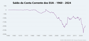 “O segundo mito é que o status do dólar como a principal moeda de reserva internacional obriga os Estados Unidos a incorrerem em déficits comerciais para fornecer dólares aos detentores de funcionários estrangeiros. O terceiro é que os déficits dos EUA são causados inteiramente por fluxos financeiros estrangeiros, admitindo que refletem uma demanda mais geral por ativos dos EUA. E que, portanto, os Estados Unidos não têm escolha a não ser acomodar consumindo mais do que produzem.