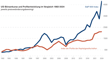 Um olhar para o mercado de ações deve causar maior inquietação: obviamente, o índice S&P 500 se afastou dos fundamentos, medidos pelo desenvolvimento dos lucros corporativos nos EUA. Ao contrário de 1929, essa bolha agora é alimentada não apenas por investidores dos próprios EUA, mas também por investidores internacionais.