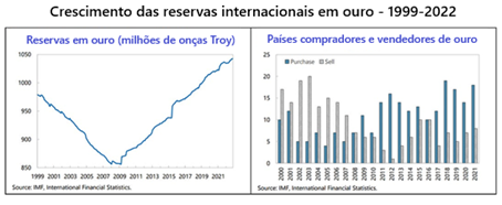 Note-se que muitas posições oficiais estrangeiras em ouro são mantidas fora dos livros. O governo pode manter ações de empresas que detêm ouro. Assim se esconde as reservas e elas deixam de ser visíveis, evitando que sejam postas em dólares.