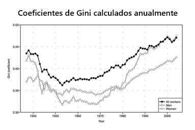 De alguma forma, um período de relativa igualdade salarial parece ter criado um novo normal para as diferenças salariais, que se tornou o padrão por várias décadas. Mais tarde se discutirá sobre o que impôs as novas normas (adiantando, os sindicatos foram muito importantes para que isso ocorresse), mas por enquanto o ponto a ser acentuado é que a desigualdade de renda parece ser menos determinada pela mão invisível do mercado do que pelas mãos visíveis dos próprios trabalhadores e empregadores no processo de negociação, de modo bem diferente do que surge o curso de introdução à Economia.