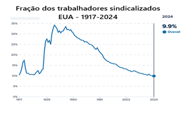 Portanto, se os sindicatos eram uma força importante que limitava a desigualdade, o seu declínio se deve essencialmente a uma fator político. Por que o ambiente político mudou tão fortemente contra os sindicatos nos EUA? Veja-se para tanto o próximo poste…