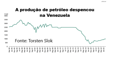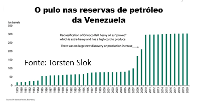 Como observou recentemente Torsten Slok, da Apollo, “grande parte do petróleo é extra-pesada, com baixa recuperação e alto custo de produção”. Isso sugere que as alegações da Venezuela de que possui imensas reservas de petróleo utilizáveis são um exagero criado com um fim político.