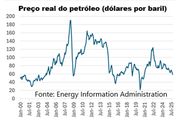 Em um nível mais profundo, a aparente crença de Trump de que o petróleo no subsolo é um ativo precioso está desatualizada há décadas. Hoje em dia, o petróleo está barato pelos padrões históricos. Eis abaixo o preço real do petróleo — seu preço ajustado pela inflação geral — desde 2000: