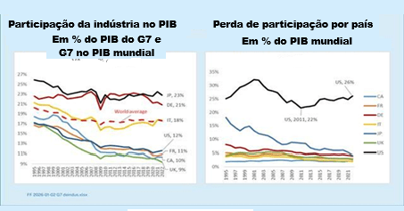 *Primeiro, a perda do G7 de participação na indústria global foi grande, duradoura e generalizada e ocorreu quase todos os países que o compõem.
