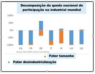 Logicamente, a perda de participação global na indústria manufatureira de um país pode ter duas origens.