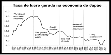 A chave para o fracasso das medidas neoliberais em impulsionar o investimento corporativo e assim acabar com a estagnação da economia japonesa desde os anos 1990 tem sido o declínio na lucratividade do investimento de capital. A lucratividade do capital do Japão caiu mais do que em qualquer outra economia do G7.