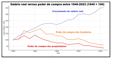 O governo afirma que os salários reais aumentaram 252% desde 1950. A matemática acima apresentada diz que se perdeu 61% do poder de compra nesse período.